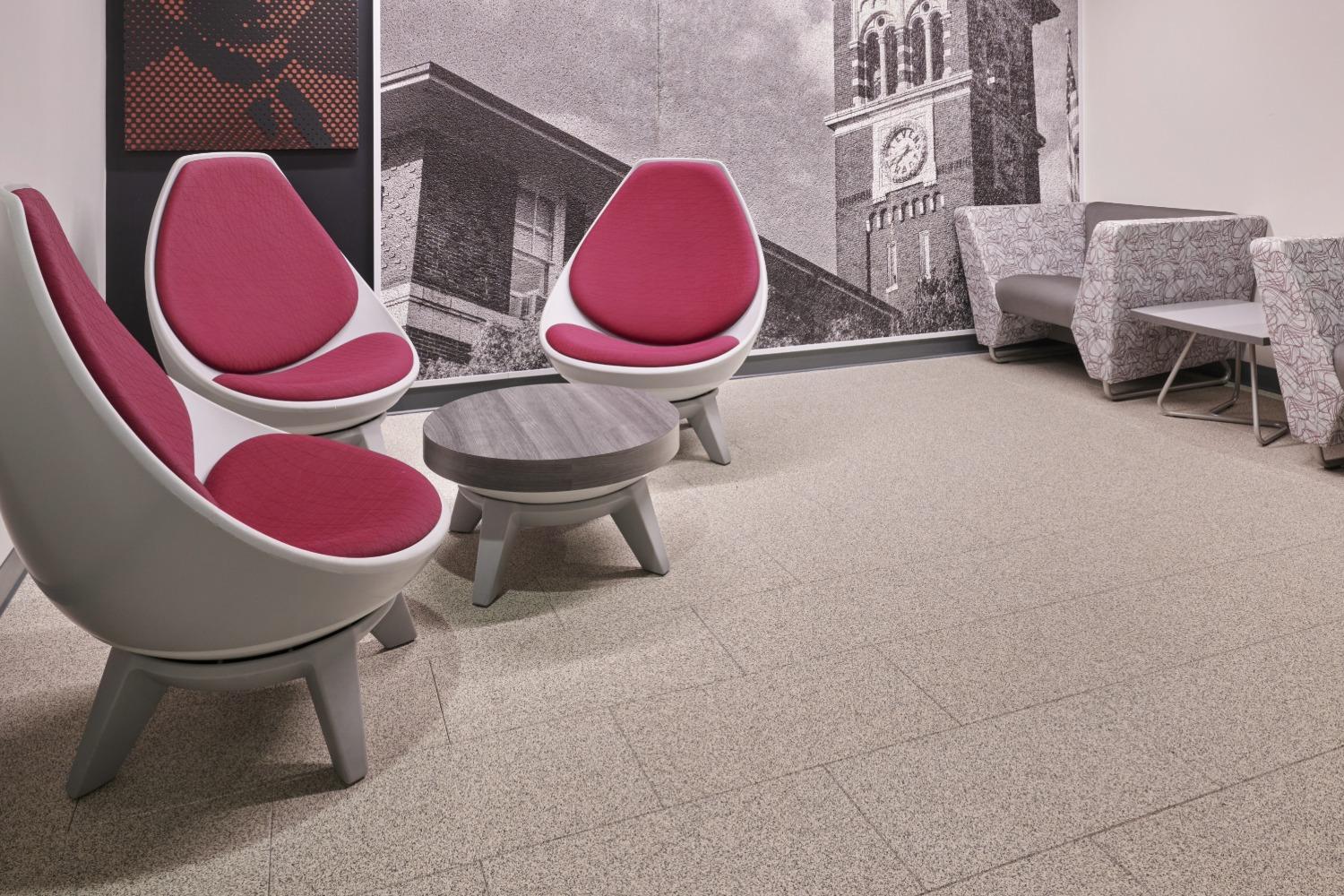 “There’s a lot of activity in both spaces,” says Williams. “Students coming in, furniture being moved around, things being printed. The REGUPOL product that was installed is functional and also offers performance benefits as the spaces are both high traffic areas. Also, the product is durable which allows those high traffic areas to be maintained as needed.”