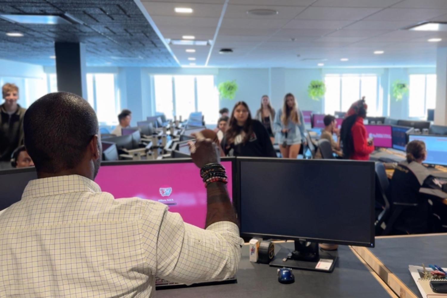 The full scope included acoustic ceiling and wall baffles to mitigate sound in the open studio, new artwork and furnishings that skillfully reflect the college’s branding, followed by new flooring throughout.